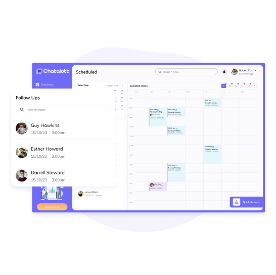 Turn meaningful interactions into lasting relationships. Chatalott helps you stay on top of every conversation with easy-to-manage follow-ups and meeting scheduling—so no one slips through the cracks.