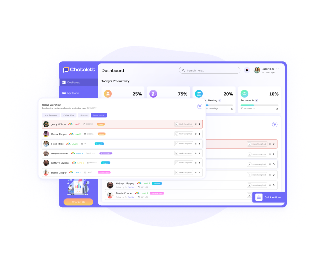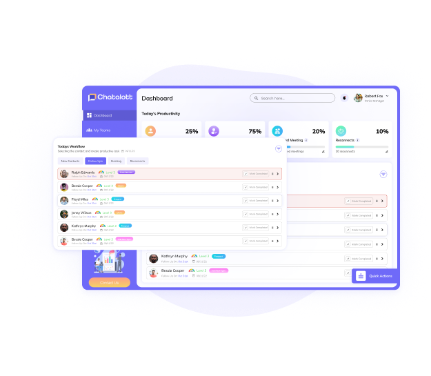 Add teammates, share contact insights, and stay aligned with Chatalott’s team dashboard. Track everyone’s daily productivity—follow-ups, meetings, and reconnects—so your whole team grows stronger, together.